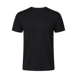 Enjoy a modern fit with no side seams, thanks to the tubular knit design. The narrow, ribbed crew neck adds a sleek touch. Double-stitched hems and sleeves enhance durability for everyday wear.