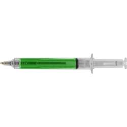 • Plastic ballpoint pen designed to resemble a syringe