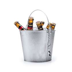 Metal bucket with a 6L capacity. Comes with an aluminum bottle opener attached by a chain.