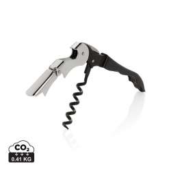 This sleek server corkscrew features a cutting blade, a double lever opening system, and a bottle opener. Perfect for any occasion, it comes beautifully packaged in a gift box.