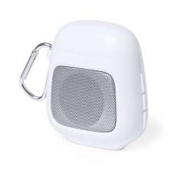 Original design Bluetooth speaker headphones. Built with durable white ABS, this set includes a 3W Bluetooth speaker featuring hands-free functionality and a convenient carrying carabiner.