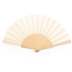 This fan features sturdy wooden sticks combined with cotton and polyester. Its natural color gives it a classic look. Each fan comes in an elegant kraft box, perfect for display.