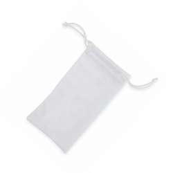 Soft white polyester eyeglass case with a convenient drawstring closure. Perfect for bulk orders, this case is an ideal choice for promotional items or retail displays. Lightweight and easy to personalize, it provides a simple yet effective way to protect eyewear. Stock up and meet your customer's needs effortlessly!
