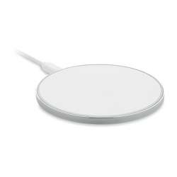 Wireless charger with a sleek aluminum frame and a glass top.