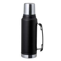 This durable thermos features a stylish black finish with polished steel accents. It comes with a convenient screw-on lid that resembles a 200ml glass, making it easy to pour.