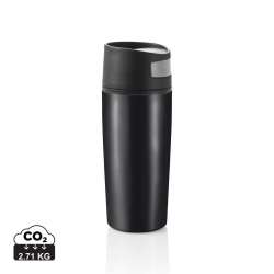 This 300ml leak-proof mug features a sleek stainless steel exterior with a stylish black finish. The interior is made from durable polypropylene.