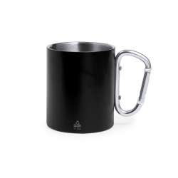 This sleek mug features a double wall design for superior insulation. Made from recycled stainless steel, it’s both stylish and functional. The carabiner-shaped handle makes it easy to carry on the go.