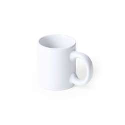 White ceramic mug with an 80 ml capacity. Perfect for coffee, tea, or any hot beverage.