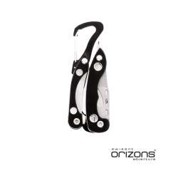 Features include pliers, a knife, a can opener, a flathead screwdriver, a Phillips screwdriver, and a convenient bottle opener. Plus, it comes with a sturdy carabiner for easy attachment.