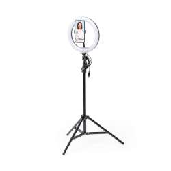 It features a bright ring light and two tripods: one for the table and one for the floor, adjustable up to 180 cm.