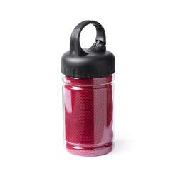 Cooling microfiber sports towel (90 x 30 cm) with UV protection, presented in a transparent case with integrated carabiner.