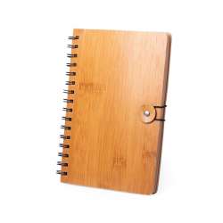 This is a stylish ring binder notebook with a sturdy bamboo cover. It features a unique elastic closure that keeps your notes secure.