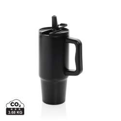This 900ml stainless steel mug is designed for convenience. It fits most cup holders and features a comfortable handle for easy transport.