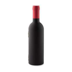 Shaped like a wine bottle, it includes a corkscrew, pourer, and drip collar.