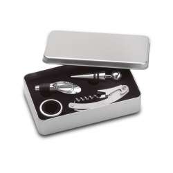 All essentials for wine lovers, packaged in a convenient tin box.